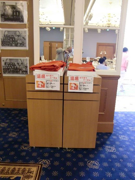 | 会場内 準備万端 OK! | 展示コーナーも一部を除いてOK! | 還暦なりきりコーナー |