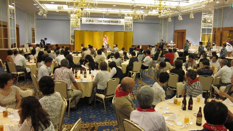 今年度(2012年〜2013年)は、我らが学年のみんなが還暦を迎える年度です。そんな記念すべき同窓会は、ぜひ大勢のみんなで、ド派手にぶちまけようぜい!と言うことで、それぞれの学区の幹事の総意の下、三学区合同で開催することになりました。 |